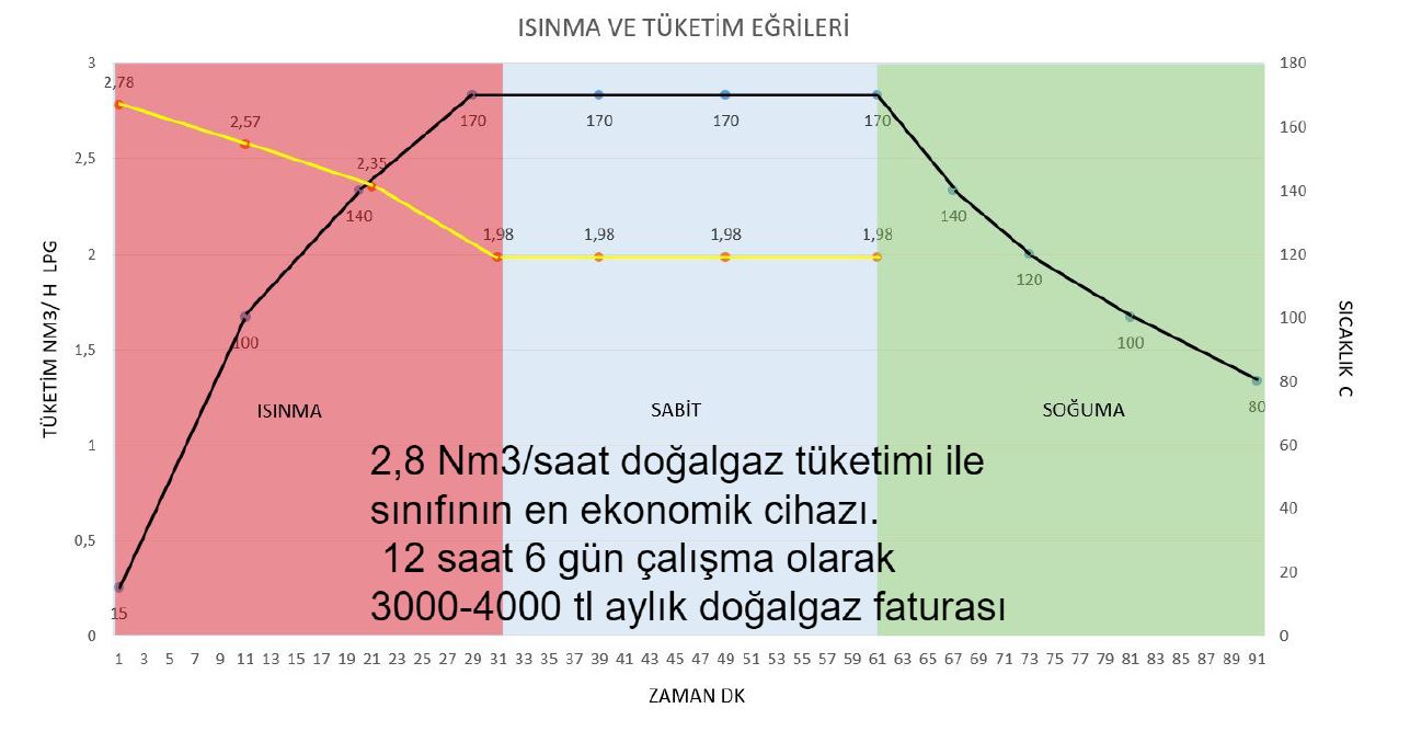 | NATURAL GAS COMSUMPTION | DOĞALGAZ SARFİYATI MİN/MAX | 2,8 NM3/ 3,67 NM3 |